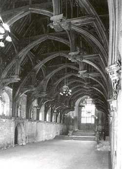 | Cảnh chụp Đại sảnh Westminster hướng về Mái cổng St Stephen với tường xây thế kỷ 11 và mái nhà thế kỷ 14. |