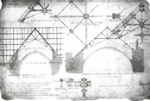 | Bản vẽ thi công cho thấy kết cấu của giàn sắt đỡ mái của Đại sảnh St Stephen. |