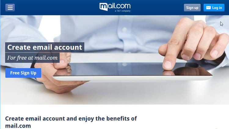 9. Mail.com - Tài khoản Email miễn phí với tên miền mở rộng