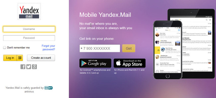 Yandex là công cụ tìm kiếm lớn nhất của Nga. Dịch vụ cung cấp email miễn phí của họ bao gồm bảo vệ chống thư rác và vi rút. Họ cũng cung cấp không giới hạn lưu trữ-chúng cho phép bắt đầu với 10 GB và thêm lưu trữ mỗi khi bạn có ít hơn 200 MB miễn phí.