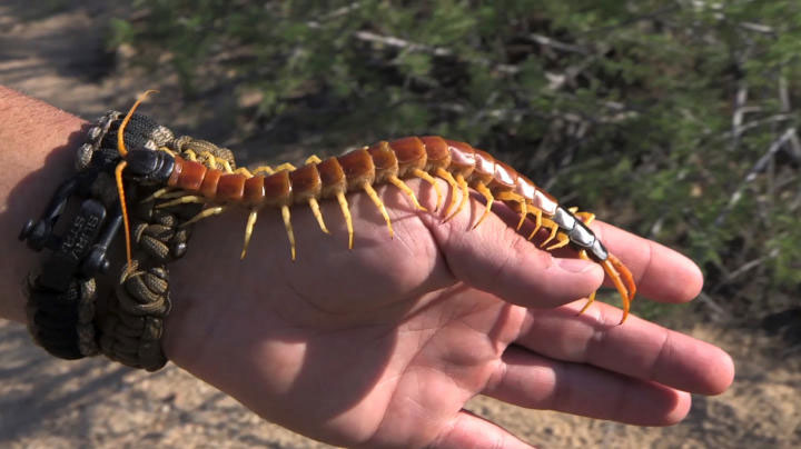 Một con rết sa mạc khổng lồ mà Coyote bắt được ở sa mạc. (Ảnh: cắt từ video).