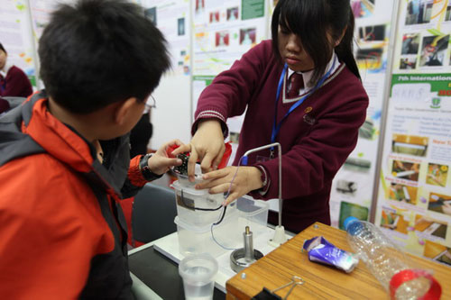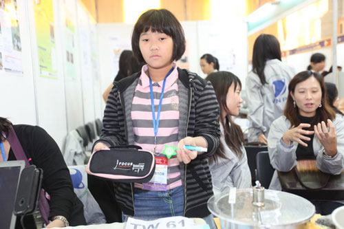 Tham quan những gian hàng của các bạn nhỏ nước ngoài, hẳn ai cũng phải thuyết phục bởi khả năng nói tiếng Anh lưu loát và khả năng thuyết trình của các bạn. Bằng thái độ cởi mở và thân thiện, những bạn nhỏ giải thích cặn kẽ về tác dụng và đặc tính vượt trội cho các sản phẩm của mình.