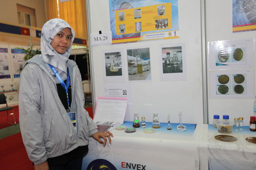 Thí sinh người Malaysia bên sản phẩm xăng sinh học của mình