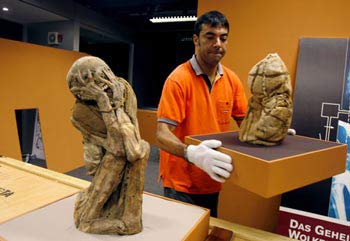 Nhân viên an ninh đang bày tỏ quan điểm bảo vệ cho xác ướp từ nền văn minh Chachapoyas sẽ được trưng bày trong triển lãm này.