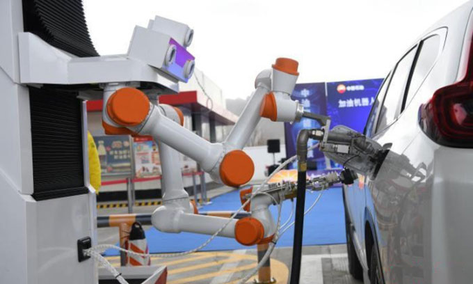 Một trạm xăng ngoài trời sử dụng robot tiếp nhiên liệu tự động hoàn toàn hôm 29/12 được đưa vào hoạt động ở tây nam Trung Quốc.