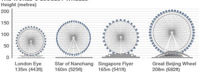 Chiếc bánh xe khổng lồ sẽ được xây dựng tại công viên Chaoyang ở phía đông Bắc Kinh, nơi sẽ diễn ra các trận đấu bóng chuyền vào Olympics năm 2008. Chi phí xây dựng chiếc bánh xe này là 300 triệu USD và giá vé cho mỗi khách là 12,5 USD.