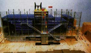 Nhiều vách ngăn và cầu thang có thể tháo ráp phù hợp với các mặt bằng rộng bao la bên trong cho đến sự đa dạng của các cuộc triển lãm. |
