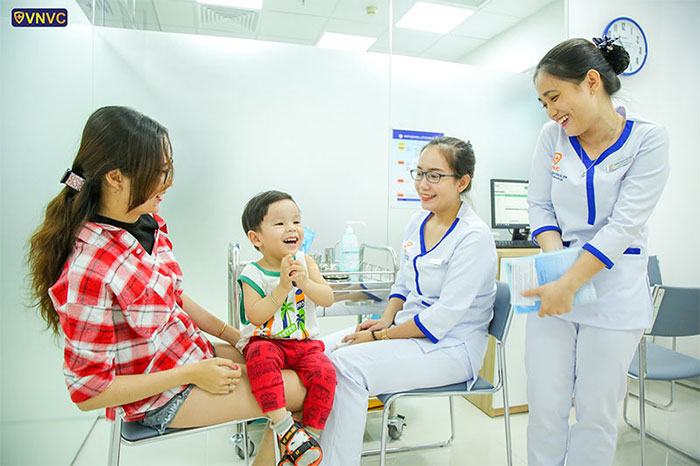 Điểm đặc biệt tại VNVC, tất cả khách hàng khi đến tiêm chủng đều được miễn phí dịch vụ khám sàng lọc trước tiêm, khách hàng sẽ được Bác sĩ chuyên khoa kiểm tra sức khỏe và tư vấn các mũi tiêm phù hợp với lứa tuổi. 100% bác sĩ, điều dưỡng tại VNVC đều có chứng chỉ tiêm chủng an toàn. Đội ngũ điều dưỡng được đào tạo chuyên biệt về tiêm chủng, kỹ năng tiêm giảm đau cùng với sự chu đáo và nhiệt tình chăm sóc trẻ.