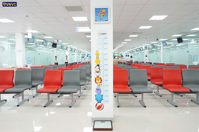 VNVC trang bị cơ sở vật chất khang trang, hiện đại, phòng tiêm với đầy đủ các trang thiết bị y tế đạt chuẩn cao cấp. Không gian phòng chờ trước tiêm và sau tiêm thoáng mát, đầy màu sắc cuốn hút, tạo sự thân thiện với trẻ. Ngoài ra mẹ và bé còn có khu vực riêng cho con bú, phòng thay tã, phòng pantry… Tại khu vực sảnh chờ trước và sau tiêm, VNVC cũng bố trí nước sạch, sạc điện thoại, wifi miễn phí… giúp bố mẹ có thời gian chờ đợi thoải mái hơn.
