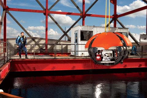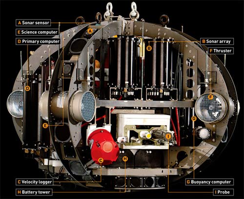Trang bị bằng 54 bộ cảm ứng siêu âm, xe tự hành của Bill Stone là quả cầu khổng lồ có thể lập được bản đồ 3-D quang cảnh xung quanh. Có thể ngày nào đó một robot tương tự sẽ tìm kiếm cuộc sống ngoài trái đất ở những hố sâu băng giá của Europa, một mặt trăng của sao Thổ. |