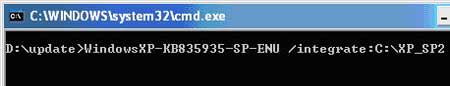 - Theo thư mục của tớ dòng lệnh là: WindowsXP-KB835935-SP2-ENU /integrate:C:\XP_SP2.
