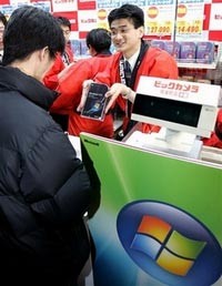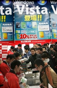 Các cửa hàng kinh doanh tại khu phố hàng điện tử Akihabara ở thủ đô Tokyo đã mở cửa từ nửa đêm để bán những chiếc đĩa Vista đầu tiên cho các khách hàng xếp hàng từ lâu ở đó.