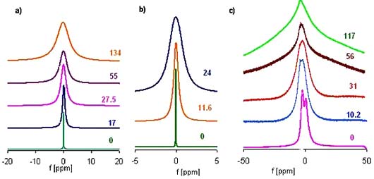 Hình 2. Sự mở rộng vạch phổ cộng hưởng trong các môi trường khác nhau