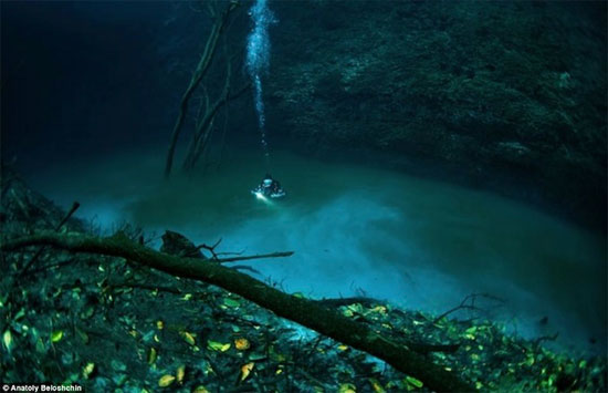 Ở độ sâu 90m trong hang động Cenote Angelita (Mexico), những người thợ lặn tài ba đầy kinh ngạc khi chứng kiến dòng sông xanh thẳm thơ mộng và huyền bí.
