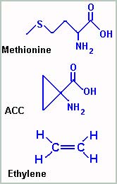 Như đã nói trên, ethylene là một kích thích tố ở thể khí rất quan trọng cho cây cối. Nó gia tăng sự loại bỏ khí CO2 và sự tiêu thụ khí O2. Nó tham gia vào nhiều giai đoạn trong sự phát triển của cây và được xem là hormone kiểm soát sự chín của trái. Năm 1979, Adams và Yang phát hiện rằng ethylene được chế tạo trực tiếp từ acide-1-aminocyclopropane (ACC).