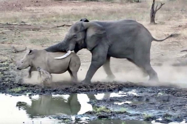 Vì sao voi châu Phi đực lại thường xuyên "gây chiến" với tê giác?