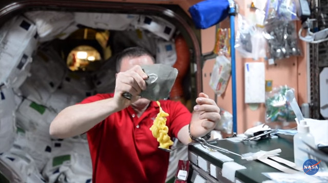 Một trong những ví dụ cho sự khổ sở của các phi hành gia đó là ăn uống. Trong môi trường vô trọng lực, việc ăn uống tất nhiên không thể bình thường giống như dưới mặt đất, mà đòi hỏi các phi hành gia có những kỹ năng "độc nhất vô nhị".