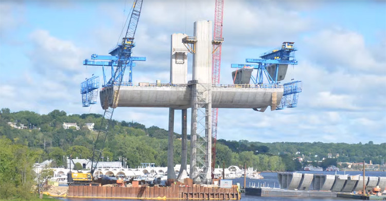 Đoạn video ghi lại quá trình xây dựng cầu Saint Croix do Cơ quan Giao thông bang Minnesota, Mỹ chia sẻ cho thấy chân cầu được xây từ nền móng dưới lòng sông, sau đó các bộ phận đúc sẵn được lắp thêm bằng cần cẩu.