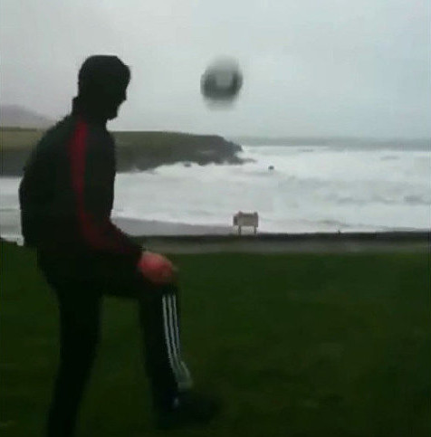 Eanna O'Connor, người rất yêu thích bóng đá, đã thử đá bóng vào cuồng phong của bão Eleanor khi nó đổ bộ vào châu Âu tuần trước.