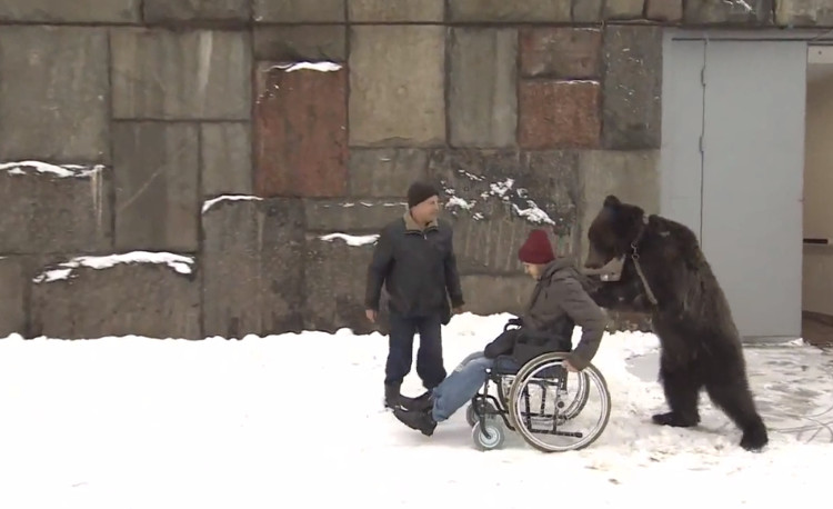 Tuy nhiên, những lo lắng của Alexandrov dường như trở nên thừa thãi bởi những con gấu không chỉ chấp nhận anh sau tai nạn mà còn bắt đầu giúp đỡ anh. Một con gấu tên Yasha thậm chí còn đứng bằng hai chân để đẩy xe lăn chở Oleg trên con đường ngập tuyết ở Moscow, Russia. Nó tỏ ra hết sức thân thiết với Alexandrov khi không ngừng dụi vào mặt anh và thỉnh thoảng ăn đồ ăn trên tay anh.