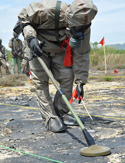 Việc rà phá bom mìn chưa nổ là một trong những hoạt động được Bộ cấp kinh phí và tiến hành như là một phần đóng góp của Việt Nam trong chương trình khắc phục hậu quả của dioxin. Đây là bước đầu trong dự án được thực hiện bởi Bộ Quốc phòng Việt Nam và Cơ quan Phát triển Quốc tế Mỹ (USAID) để tẩy độc đất và cát bị ô nhiễm dioxin ở các địa điểm gần sân bay.