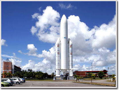 Trung tâm vũ trụ Kourou ở French Guiana (Nam Mỹ), nơi vệ tinh VINASAT sẽ được vận chuyển tới để lắp vào tên lửa Ariane 5 và phóng lên vũ trụ ở độ cao 35.768 km. (Ảnh: Guiana Space Center). |