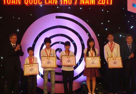 Trong số 5 giải nhất lần này, hội đồng giám khảo đã chọn 2 đề tài là “Thuốc trừ sâu từ hạt Bình Bát” của em Lê Bảo Ngọc (SN 1994, Trường THPT Bảo Lộc, Lâm Đồng) và “Mô hình lắp ráp cấu trúc hình học không gian, biến đổi kích thước” của em Võ Thị Thu Hiền, Trường THPT Trịnh Hoài Đức, Thuận An, Bình Dương để đề nghị Tổ chức sở hữu trí tuệ thế giới (WIPO) của Liên hiệp quốc trao Huy chương vàng.