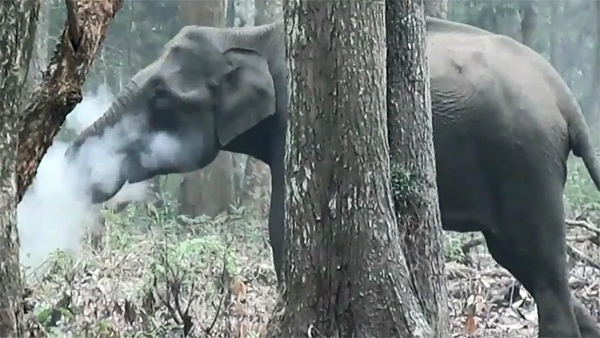 Một cảnh tượng khó tin đã được một trợ lý giám đốc của Hiệp hội Bảo tồn Hoang dã WCS của Ấn Độ chứng kiến và ghi lại được, đó là cảnh một con voi cái đang thực hiện hành động như thể "hút thuốc" và nhả khói ra.