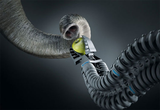 Chính sự linh hoạt trên đã tạo cảm hứng cho hãng cơ khí Đức Festo thiết kế vòi voi điện tử làm từ các bộ phận in theo kỹ thuật 3D và được kiểm soát bằng các hệ thống cơ hơi.