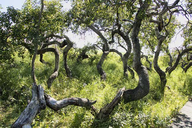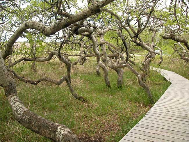 Vườn cây cổ thụ xoắn nghiêng lạ thường tại Canada.