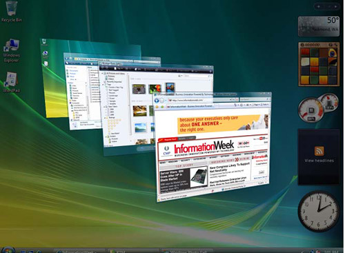 Thành phần đồ hoạ Flip 3D của Vista cho phép bạn sắp xếp các cửa sổ mở theo kiểu lật ở giữa màn hình và cuộn chúng lại khi di chuột từ trước ra sau giữa các ứng dụng. |