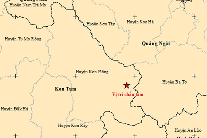 Xảy ra động đất có độ lớn 4.5 tại huyện Kon Plông, tỉnh Kon Tum