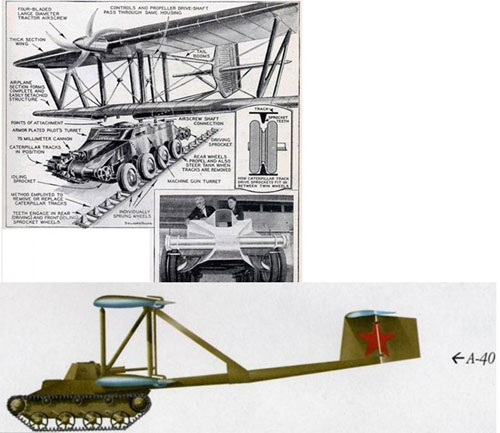 Tại Mỹ, kỹ sư John Walter Christie đã thiết kế mô hình xe tăng tự hành với đôi cánh bay, tổng trọng lượng là 4 tấn. Ý tưởng là xe tăng sẽ sử dụng sức mạnh của nó để chạy với tốc độ 88,5km/giờ sau đó chuyển sang hệ thống cánh quạt để lao lên bầu trời.