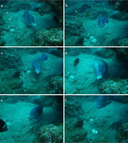 Lần đầu tiên các nhà khoa học chụp được loạt ảnh về loài cá hàng chài đốm đen, có tên khoa học Choerodon schoenleinii, biết sử dụng công cụ để lấy thịt trong vỏ con trai.