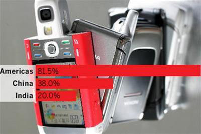 Người tiêu dùng trong một quốc gia kết nối với nhau như thế nào? Bắc Mỹ hiện đang chiếm 81,5% về máy điện thoại cầm tay, còn Trung Quốc mới chỉ là 38% trong khi con số này ở Ấn Độ là 20%. Tuy nhiên, về số người thuê bao ĐTDĐ, Trung Quốc hiện đang dẫn đầu với 504,7 triệu thuê bao dự kiến trong năm 2007, so với 272,9 triệu ở Bắc Mỹ và 226 triệu ở Ấn Độ.