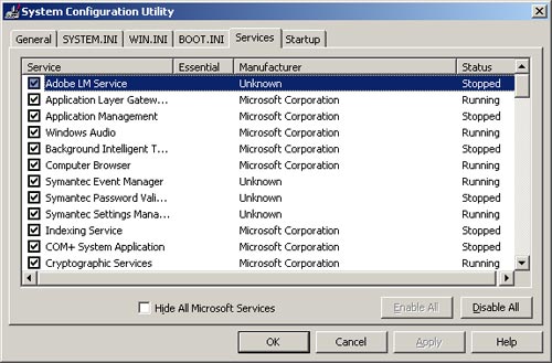 Chú ý: Nếu ngắt tất cả các dịch vụ Microsoft, sau đó khởi động lại máy tính, tiện tích System Restore (phục hồi hệ thống) cũng sẽ ngưng hoạt động và bạn sẽ mất tất cả các điểm phục hồi hệ thống đã có. Do đó, không cần phải ngắt tất cả các dịch vụ này khi dùng tiện ích Msconfig khi gỡ rối các vấn đề kết nối.